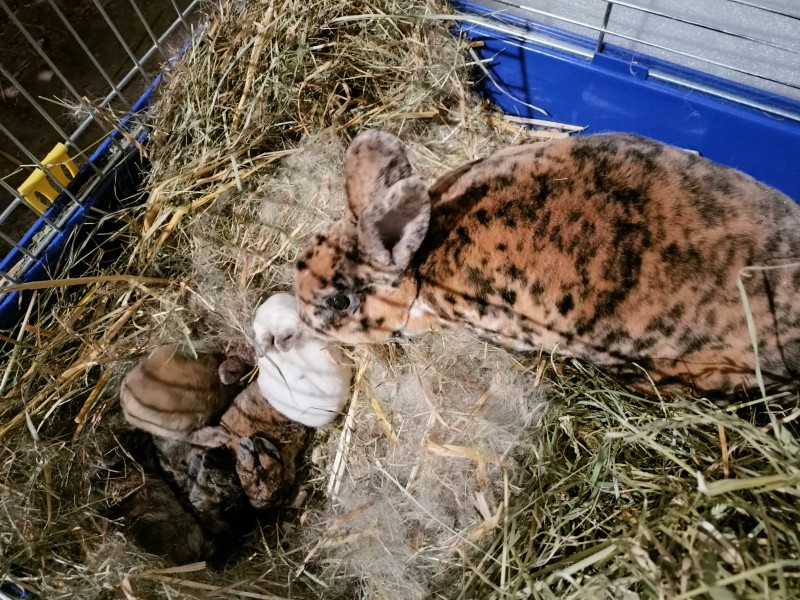 29.9.2016 - se narodila králíčata leopardíků - minirex strakáč černožlutý Ashi x Tygr, Samy x Tygr