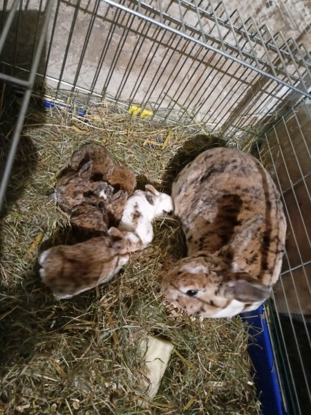 foto 18.2.2017 - mladým 4 dny 19.3.2017 - už bez mámy, hnědé králíče od jiné samice