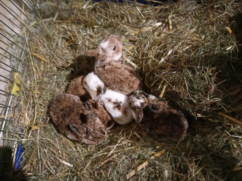 Mláďata dobře rostla, byla hodně čilá. Nejdříve jsme mysleli, že jedno mládě je samička a podle toho jsou i fotografie, ale nakonec se ukázalo, že jsou to samí kluci. Mláďata jsou čistokrevná, ale z důvodu snižování stavu králíků na zimu a pro zájem o králíčky na mazlení, jsme netetovali a všechna mláďata byla prodána bez PP.